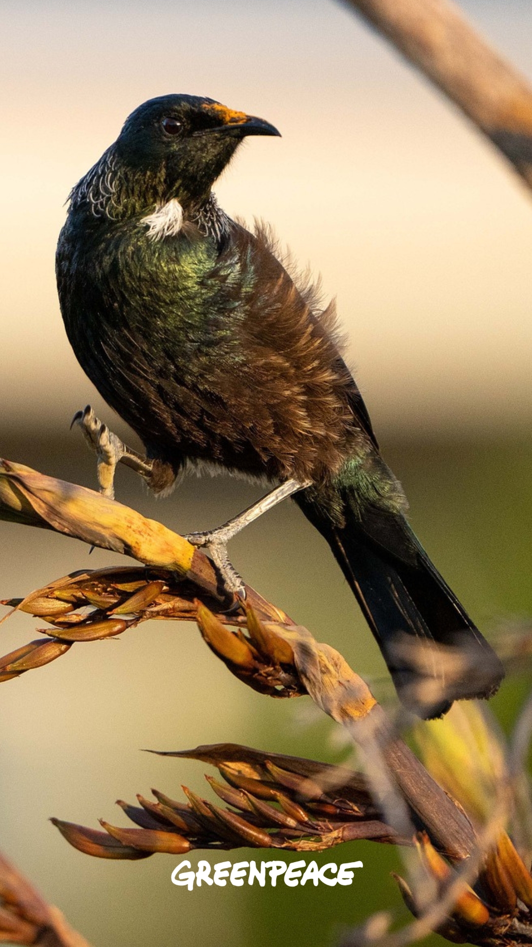 A native tūī perches on flax