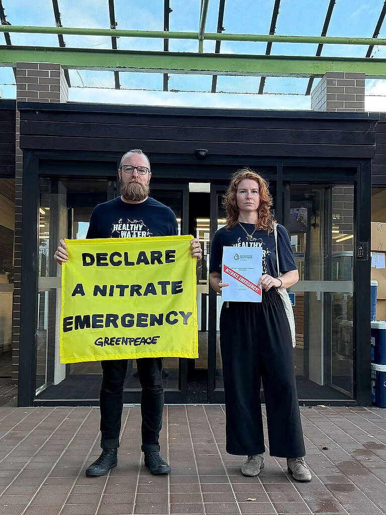 Greenpeace activists are demonstrating outside Environment Southland today, handing out copies of a recent report on Southland groundwater to force councillors to confront the realities of nitrate contamination in the region. Greenpeace says that high levels of nitrate in drinking water in the region warrant immediate action to protect the health of the community.