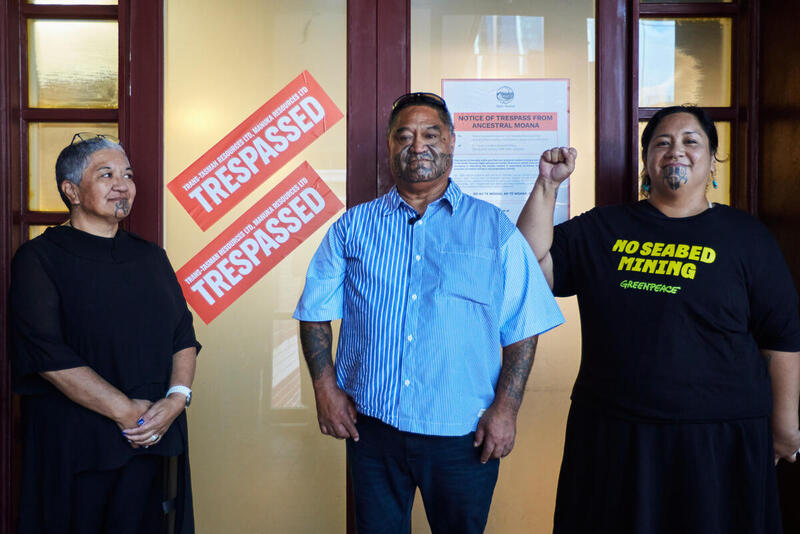 Hand delivered by Rukutai Watene of Ngāti Ruanui, alongside Greenpeace Aotearoa, the notice was served peacefully at the headquarters of Manuka Resources – parent company of Trans Tasman Resources (TTR).