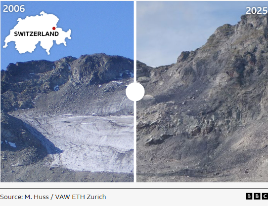Como éste, hay cientos de casos similares que se replican en todo el planeta, porque estas fuentes de agua congelada están retrocediendo —y rápido—. También en Suiza los glaciares se han visto especialmente afectados, perdiendo una cuarta parte de su hielo en los últimos 10 años, según revelaron las últimas mediciones del Monitoreo de Glaciares en Suiza (GLAMOS).