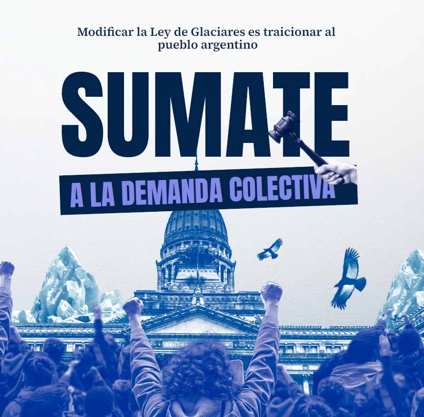 Sumate a la demanda colectiva más grande de la historia para denunciar la inconstitucionalidad de la reforma a la Ley de Glaciares. No vamos a permitir que ningún proyecto de ley o de inversión destruya lo que logramos con años de lucha ambiental.