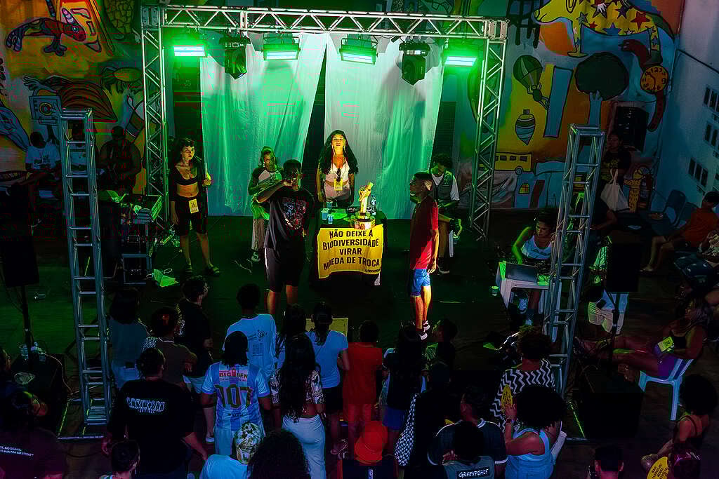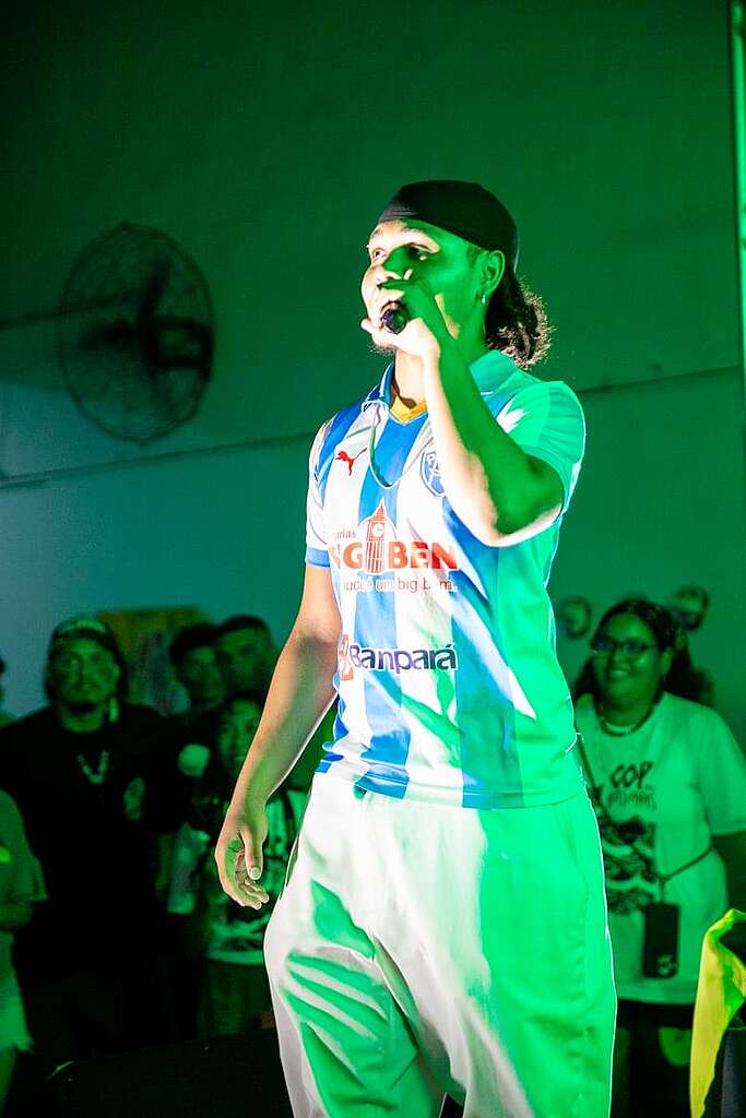 Viena, artista da periferia de Belém que usa a música como instrumento de mudança, conta que a crise climática é tema muito presente nas batalhas de rima e em todo o movimento Hip Hop da cidade. Espaços esses que funcionam como trincheiras de expressão para quem vive em bairros historicamente vulnerabilizados, como periferias e baixadas, onde a ausência de políticas públicas e o acesso limitado a direitos são parte do cotidiano.