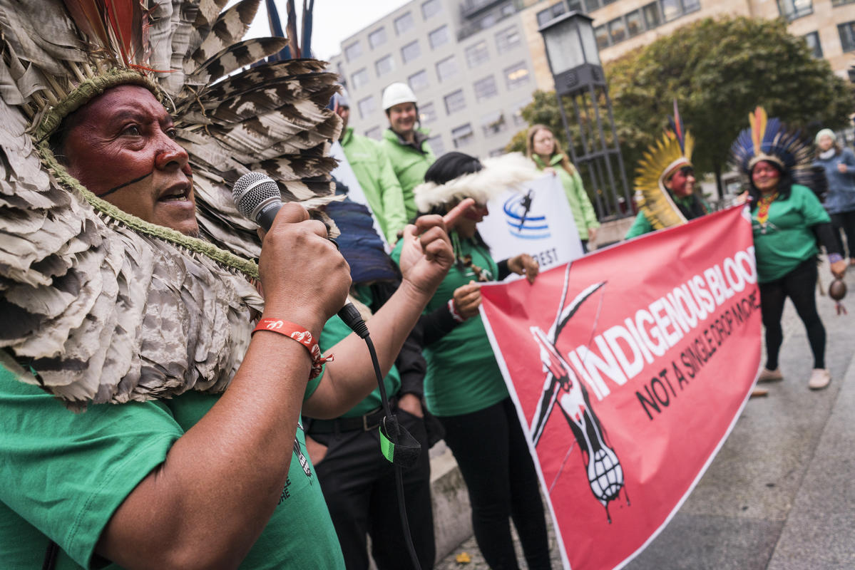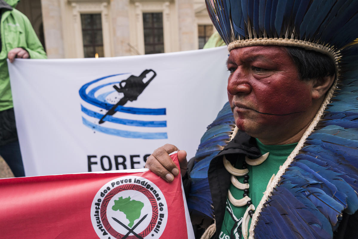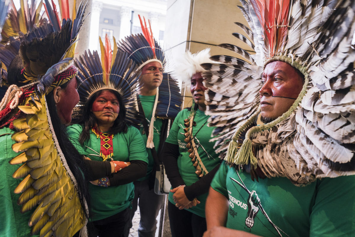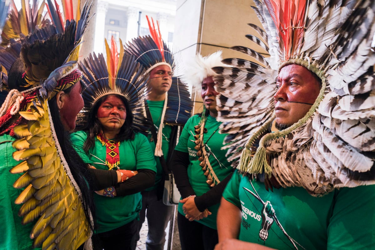 Com a mensagem “nossa sobrevivência está em jogo”, lideranças de oito etnias diferentes do Brasil exigiram a proteção das florestas e a responsabilidade das empresas em não comprar produtos ligados ao desmatamento