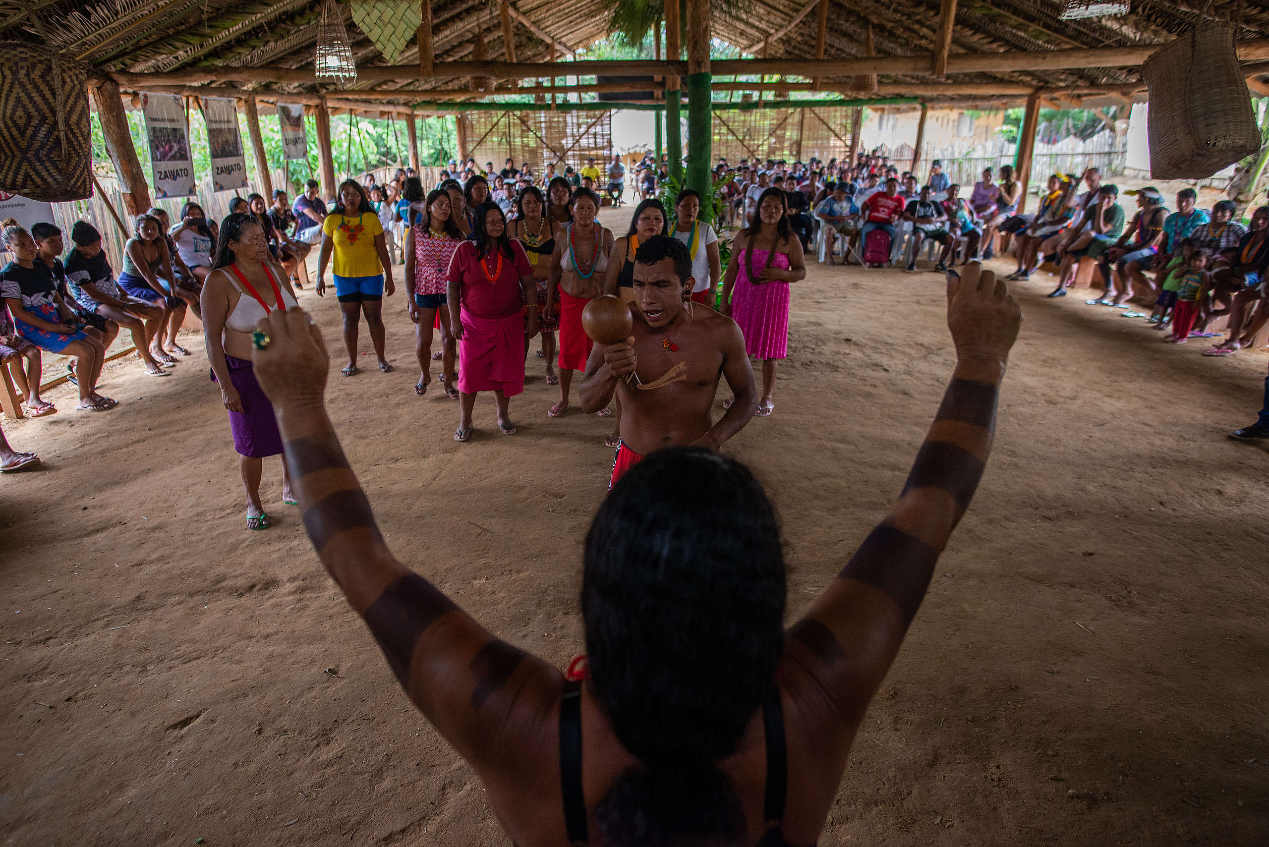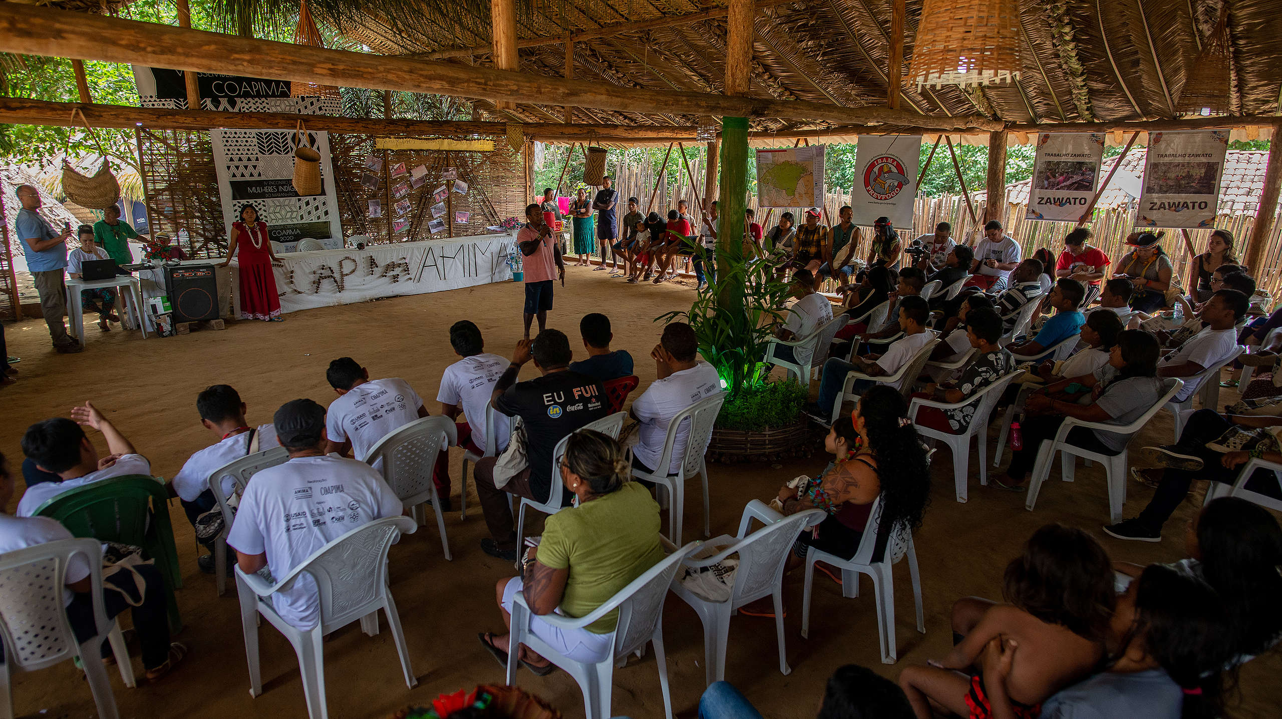 Realizados na Aldeia Massaranduba, na Terra Indígena Caru, região norte do Maranhão, no extremo leste da Amazônia, os dois eventos foram protagonizados pelas mulheres e contaram com a ampla presença de jovens, como os do grupo Zawato (cujo significado é águia real).