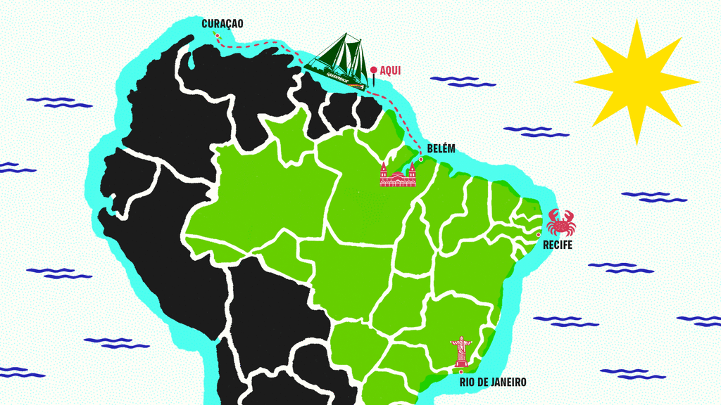 A primeira parada do navio será no Pará, em Belém, cidade-sede da COP30. Depois, a embarcação irá descer a costa brasileira parando nas cidades de Recife (PE) e Rio de Janeiro (RJ). Haverá visitações abertas ao público nesses três locais e muitas conversas sobre a importância de proteger as florestas, os oceanos e de lutar por justiça climática!