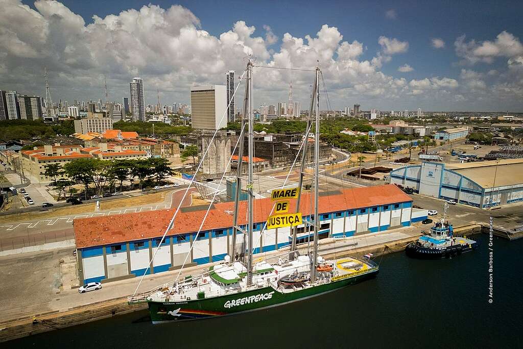 O navio do Greenpeace vem ao país para acompanhar a COP30 com uma mensagem direcionada aos líderes globais em defesa das florestas e do clima. A embarcação é uma plataforma de mobilização e será palco de uma série de atividades conectadas a este momento tão relevante para a Amazônia e, depois, seguirá para Recife e Rio de Janeiro promovendo a conscientização sobre Justiça Climática e Oceanos.