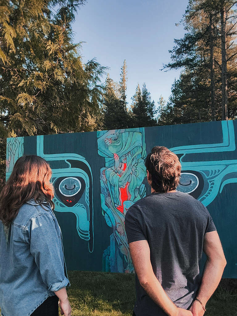 To convey this message, Greenpeace Canada has commissioned two talented artists to create powerful, inspiring murals. We asked Jessica Winters, an Inuk artist from Makkovik, Nunatsiavut, to depict what Indigenous stewardship looks like to her. On the other side of the country, Nicole Wolf, from Calgary, Alberta (located on the Blackfoot Confederacy and Treaty 7 peoples) travelled to Pender Island where she brought to life a mural reflecting on the emerging threat of deep sea mining. Let’s travel!
