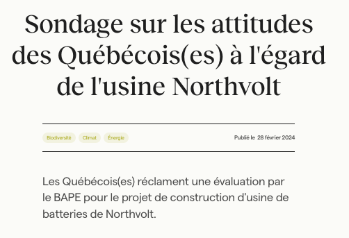 De nouvelles données montrent que la population canadienne soutient massivement la nouvelle législation fédérale contre l'écoblanchiment (projet de loi C-59). 93 % des personnes sondées affirment que: « Les entreprises devraient être passibles de sanctions si elles font des déclarations environnementales dont elles ne peuvent prouver la véracité », selon un sondage réalisé par le…