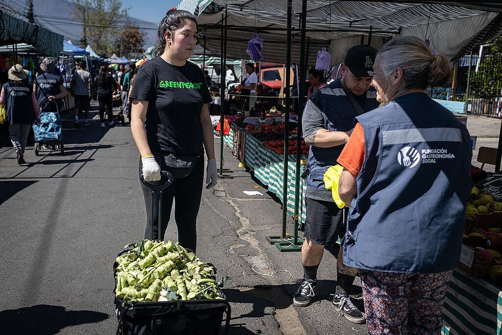 Aquí las imágenes del trabajo de Fundación Gastronomía Social y Greenpeace que revelan la recolección de desperdicios en la feria libre y el trabajo de voluntarios cocinando estos alimentos descartados para transformarlos en almuerzos a la comunidad.