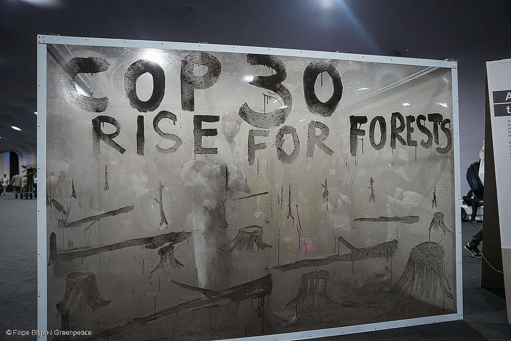 En este sentido, hemos realizado dos importantes intervenciones artísticas para exigir a los líderes mundiales acciones audaces y concretas para proteger los bosques del mundo, frenar el cambio climático y asegurar el financiamiento para las comunidades más afectadas.