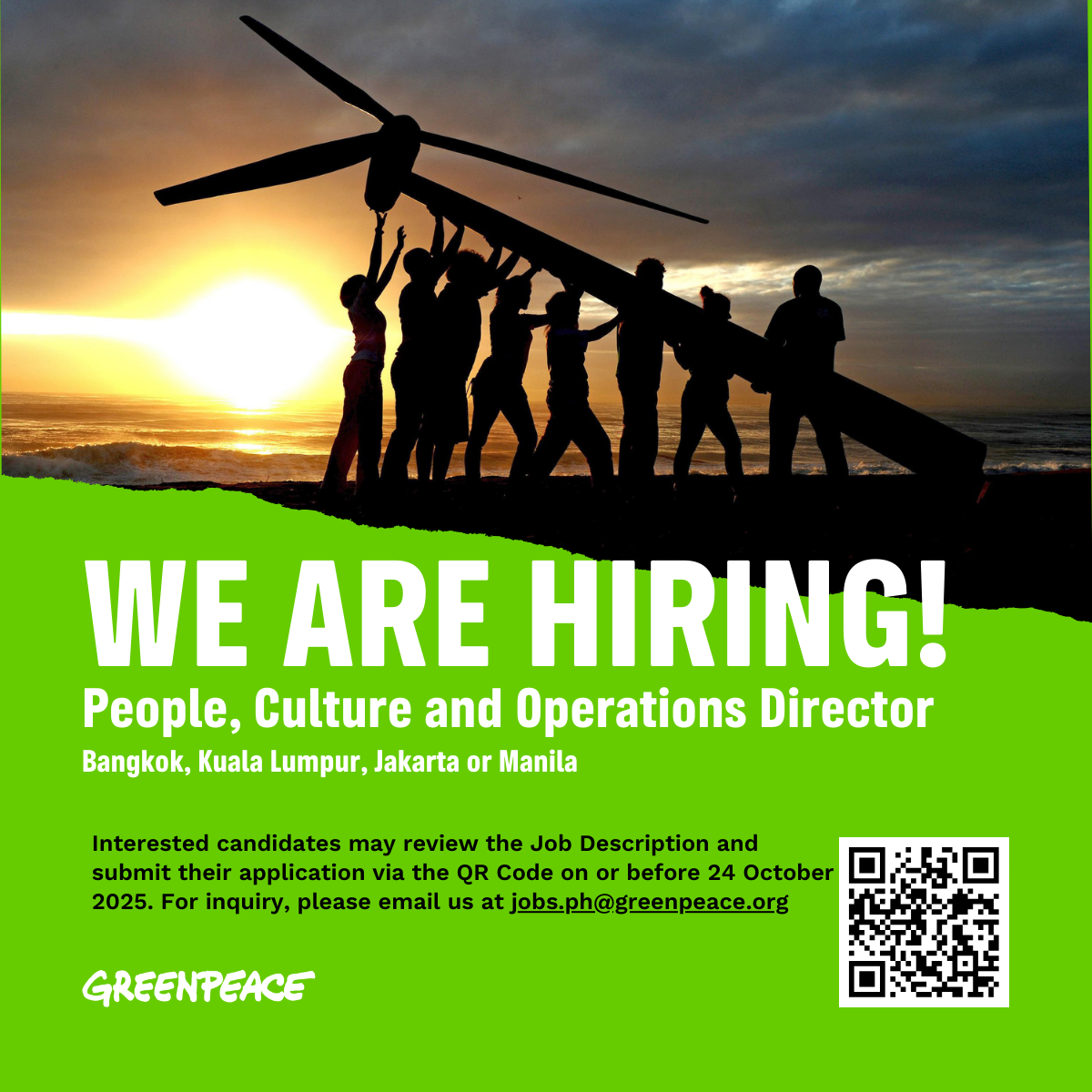 Greenpeace Southeast Asia (GPSEA) menawarkan peluang yang dinamis dan bermakna untuk pengembangan profesional. Organisasi ini dipimpin oleh tim yang beragam dan berkomitmen yang memegang teguh standar profesional tertinggi dari organisasi kampanye lingkungan terkemuka di dunia. Dengan bekerja bersama rekan-rekan yang bersemangat dan terampil, Anda akan membantu mengatasi beberapa tantangan lingkungan paling mendesak di planet ini.