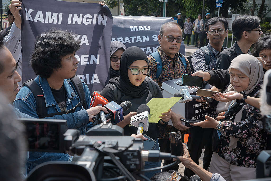 Jakarta, 17 April 2026. Sejumlah kawan dan kolega Wakil Koordinator Bidang Advokasi KontraS, Andrie Yunus, menggelar aksi damai untuk menyampaikan surat terbuka kepada Presiden Prabowo Subianto melalui Kementerian Sekretariat Negara. Mereka yang datang dari berbagai organisasi masyarakat sipil, seperti KontraS, Lembaga Bantuan Hukum (LBH) Masyarakat, SAFEnet, Indonesia Corruption Watch, Amnesty International, dan Greenpeace Indonesia, mengantarkan surat baru yang ditulis langsung oleh Andrie, serta surat-surat yang telah dikirimkan sebelumnya.