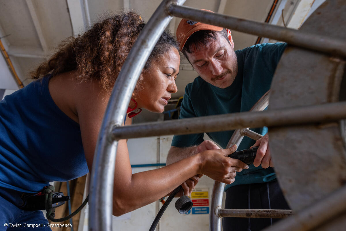Durante i tre giorni a bordo dell’Arctic Sunrise, Dan ha partecipato a ricerche scientifiche, aiutato ad avvistare megattere e ha dispiegato un microfono subacqueo per captare i suoni di balene, delfini e altre creature marine. Ha anche assistito al prelievo di campioni di acqua marina a 30 metri di profondità per analizzare le tracce di DNA degli animali marini e partecipato alla pulizia della spiaggia di Cooper’s Island, alle Bermuda