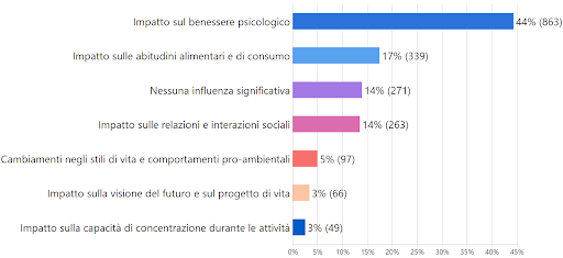 - il 5% ha percepito un impatto più ampio sui propri stili di vita in generale;