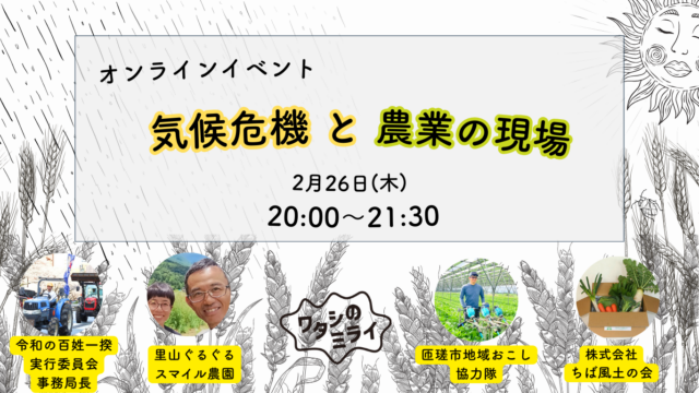 このイベントは、気候変動が気になって、何か自分も取り組みたい、でも何もできないし、何ができるかもわからないと感じているあなたのためのイベントです。このイベントに参加することそのものが、あなたができる大きなアクションのひとつ。ぜひご参加をお待ちしています。