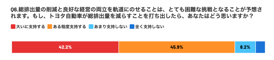 先日、日本で熱中症・水害・農林畜水産物損害の経験者(気候被害者)のみを対象にグリーンピースが委託して行った意識調査では、「トヨタ自動車が総排出量を減らすことを打ち出したら、どう思うか」という問いに、「大いに支持する」「ある程度支持する」と答えた方が合わせて88.1%にも上りました。そこで、総排出量の削減目標を設定する必要があるとお考えかどうかなどを公に尋ねるトヨタさんへの公開質問状も、豊田会長と佐藤社長宛てに10月10日にお送りしました。