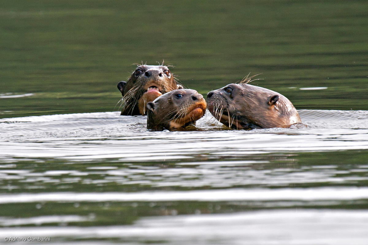 オオカワウソは、体長が最大で1.8メートルに達する世界最長のカワウソです。家族で生活し、強い絆と協力的な狩猟によって餌をとることで有名です。餌は主に魚類ですが、甲殻類や小さい河川生物も食べます。近年、森林伐採、河川改修などにより河川・湿地の自然環境が破壊され、オオカワウソの営巣地や狩り場が失われています。また、金採掘で使用される水銀による水質汚染で、健康にも被害が出ているのです。