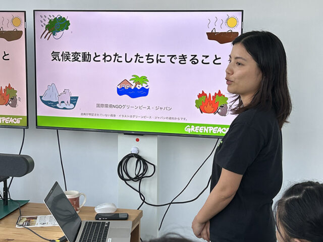 ドキュメンタリー映画を見て気候変動の現実を知り、衝撃を受けたことがきっかけです。最初はボランティアとしてグリーンピースに関わり、勉強会に参加する中で同じ関心を持つ人たちとの出会いもあり、関心が高まっていきました。