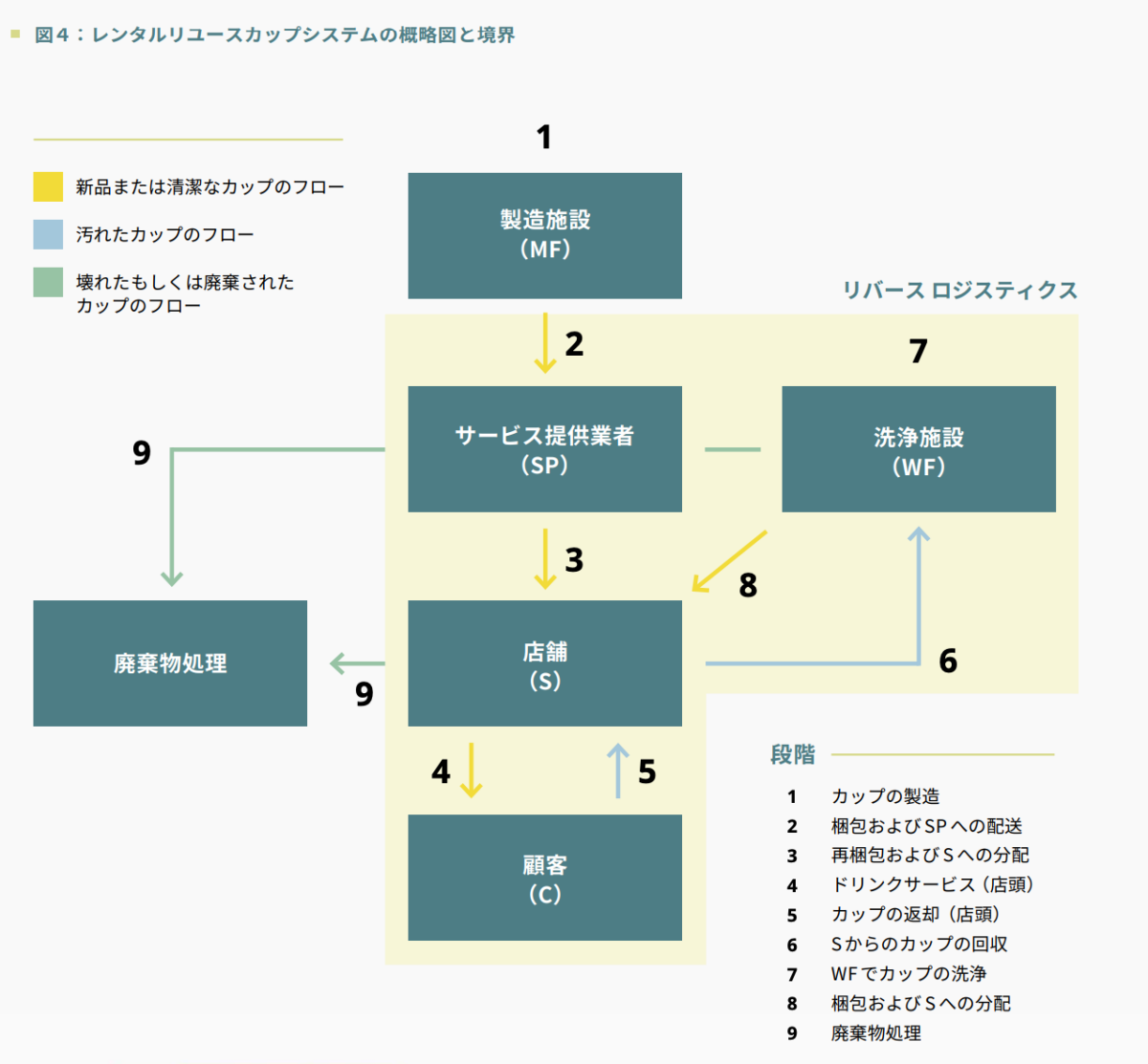 両調査において使用されたライフサイクルアセスメント(以下、LCA)は、ある製品の環境への影響を測定したり、定量化する手法を指します。LCAは、原材料から生産過程、包装、流通、廃棄といったライフサイクル全体をみます。また、各段階におけるエネルギー材料や水量、それに伴う排出量を評価します。LCAは、非常に包括的で環境へのさまざまな影響を考慮する特徴があります。LCAを用いて得られた有益な情報は、環境フットプリント(人間の活動による環境負荷を計測し可視化すること)の算出や温室効果ガス削減のために生産プロセスを最適化する方法などさまざまに活用できます。 東アジアにおいてどのようにして使い捨て容器を削減するかという議論が盛んな中、この調査ではリユースシステムのひとつであるレンタルリユースカップシステム(リユースサービス業者がカフェなどの食品飲料販売店にリユースカップを提供し、配送、回収、洗浄、補修などを担うシステム)に着目しました。東アジアの大都市を例として、レンタルリユースカップシステムと使い捨てを比較し、リユースカップシステムがどのように機能するかについて研究しました。調査では、5つの異なるサービス事業者から実際の運用データを収集し、それらをもとに東アジアにおける典型的なレンタルリユースカップシステムのモデルを作成しました。そのモデルに、各地域のエネルギー源や輸送距離など、場所ごとの具体的なデータを組み込んで分析を行いました。
