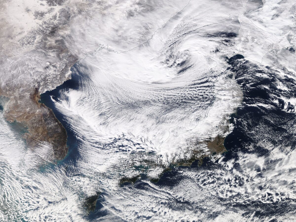 JPCZは、冬の日本海に現れる雪雲が発達しやすい収束帯のことです。シベリア大陸からの寒気が朝鮮半島の山脈で二手に分かれ、再び日本海上でぶつかる(収束する)ことで発生し、長さ約1000kmにも及びます。集中豪雨をもたらす線状降水帯と似ていることから、「線状降雪帯」とも呼ばれます。