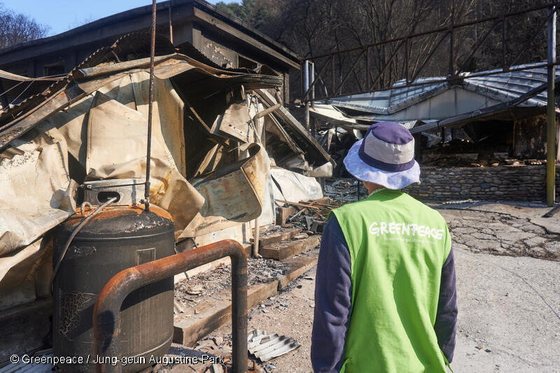 山火事の要因は土地が乾燥していたことに加え、高温が続いたことがあげられています。グリーンピース韓国は大学の教授らとも協力し、気候危機の深刻さをメディアに訴えるなどの行動を起こしました。