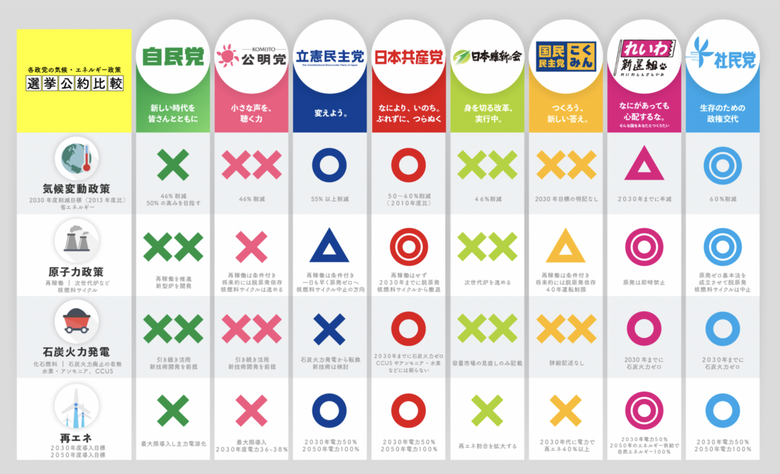 衆議院議員選挙が近づき、各党の公約が出揃いました。