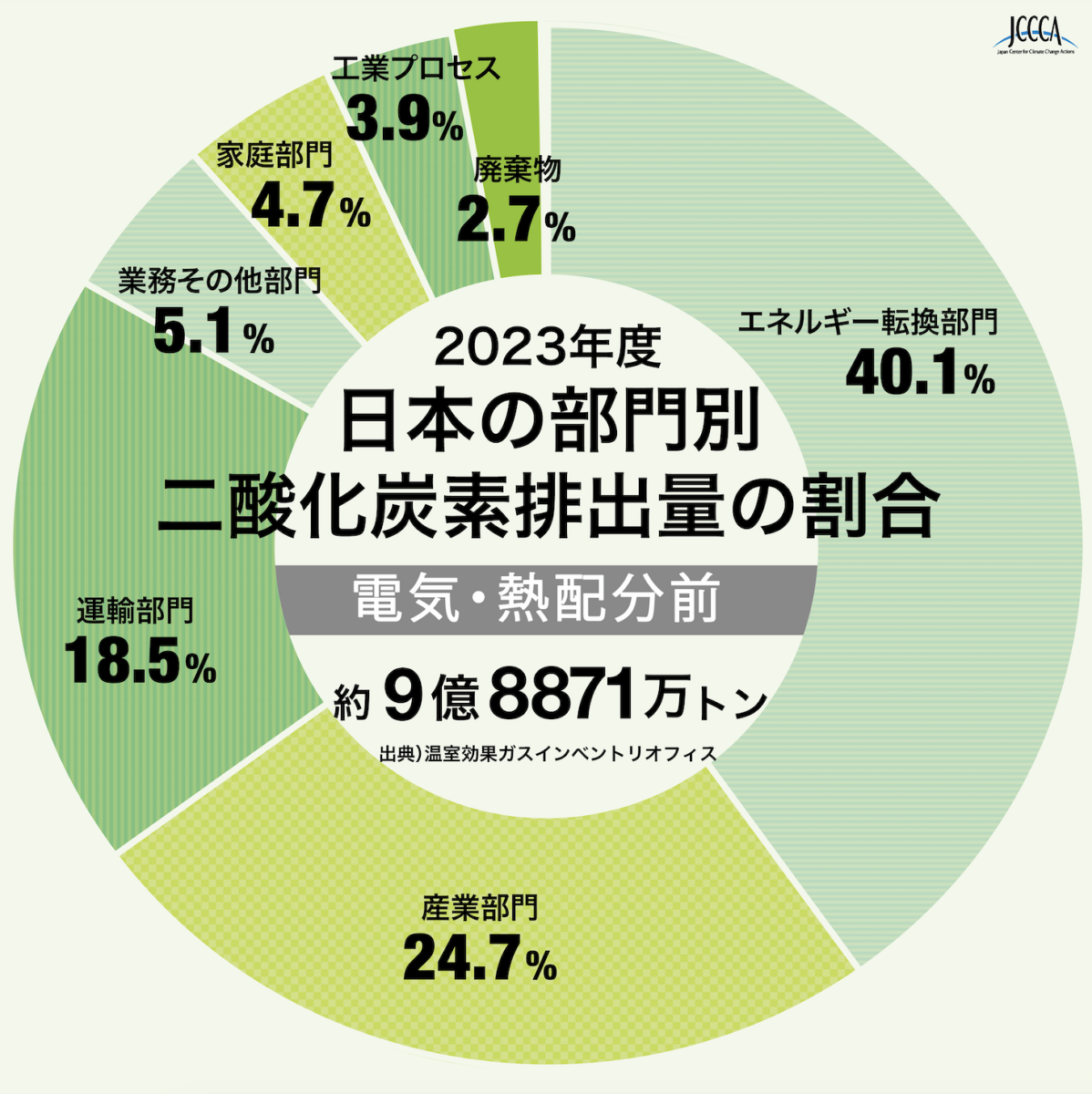 日本の温室効果ガス排出の半分を大口事業者(大企業など)が占めています。