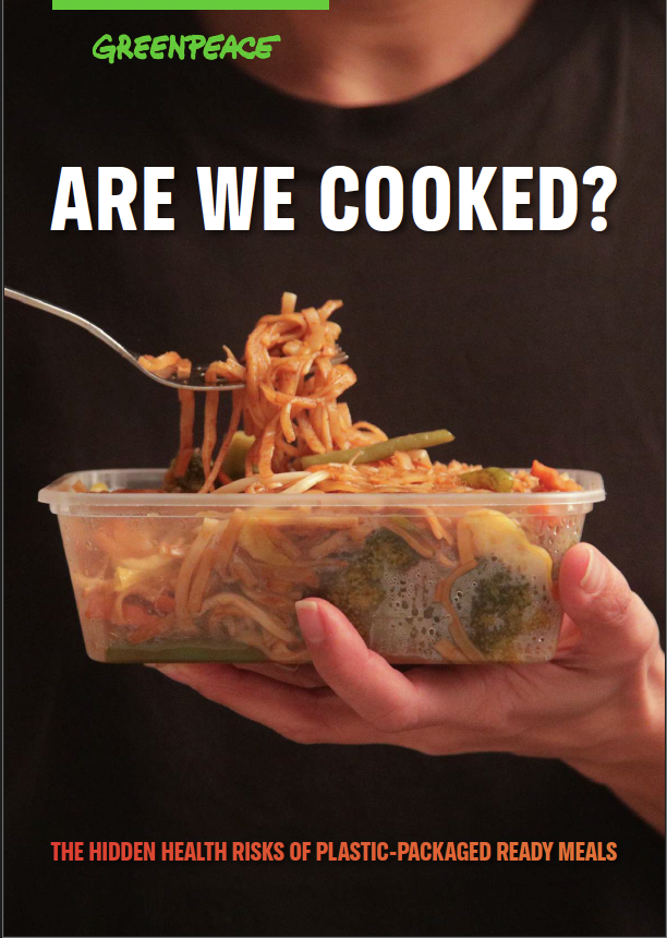 国際環境NGOグリーンピース・インターナショナル(本部・アムステルダム)は2月24日、プラスチック容器に入っている調理済み食品に潜む健康リスクに関して、査読付き論文24本を検証した文献調査報告書『Are We Cooked? The Hidden Health Risks of Plastic-Packaged Ready Meals』を発表しました。本報告書では、2021年以降にプラスチック容器や健康に関して発表された科学文献24本を検証し、プラスチック容器に入った調理済み食品やテイクアウト食品を電子レンジやオーブンで加熱すると、数十万個のマイクロ・ナノプラスチック粒子および化学物質が食品に放出される可能性があることを明らかにしました。