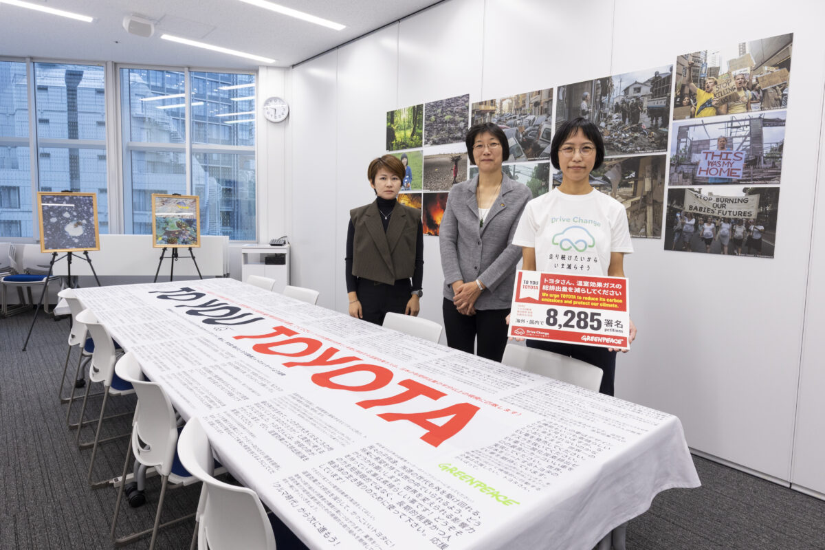 実際、トヨタさんが毎年、算出、公表している排出量は、日本の年間排出量と比較すると、その半分以上にも匹敵する規模です。グリーンピースは今年、トヨタさんに「1.5℃に整合する総排出量の削減目標を出してください」と、さまざまな方法で働きかけを行いました。