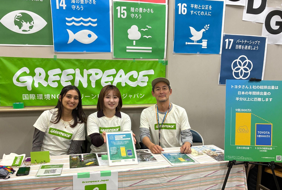 11月下旬には都内大学にて開催されたSDGs Fairにてグリーンピース・ジャパンの活動を伝えるブースを出展。その際には、ボランティアさん自身の言葉で、グリーンピース・ジャパンの活動や署名について、ブースに立ち寄る学生さんにお伝えしていただきました。