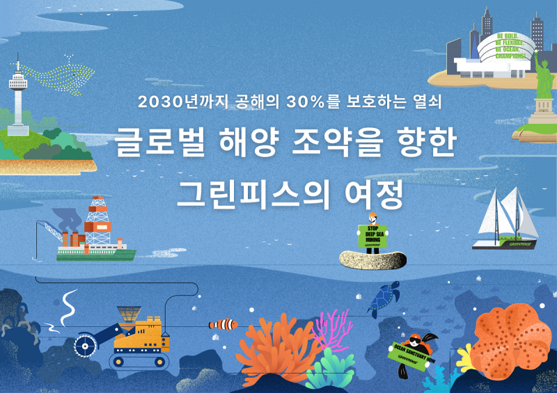 2023년, 글로벌 해양조약 합의 후, 최소 60개국 이상의 비준이라는 또 다른 목표를 향해 그린피스 서울사무소는 달려왔습니다. 특히, 대한민국 정부가 조속한 비준을 통해 해양보호에 앞장설 수 있도록 다양한 활동을 진행해 왔는데요. 그 발자취를 돌아보고자 합니다. 2019년 서울 사무소는 해양보호구역의 확대를 위해 30X30 캠페인을 런칭한 후 다양한 활동을 진행왔습니다. 지난 2022년에는 해수부에 글로벌 시민 450만 명의 서명을…