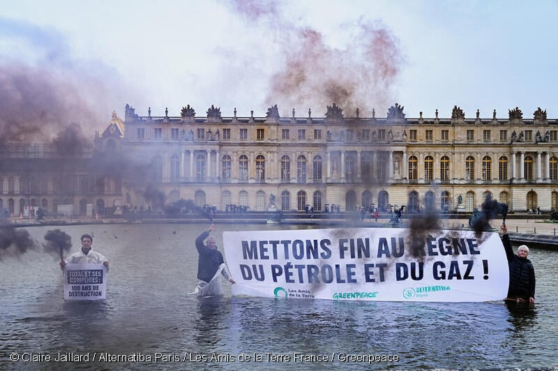 그린피스 활동가들은 이 사안의 중요성을 알리기 위해 2023년 토탈에너지 창립 100주년을 맞아, 베르사이유에서 비폭력 직접행동을 펼쳤습니다. 이들은 “석유와 가스의 지배를 끝내라!”라고 적힌 현수막을 펼치며 토탈에너지가 지구 기후위기 대응에 책임을 질 것을 강력히 요구했습니다.