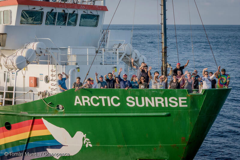 태평양을 항해 중인 Arctic Sunrise호의 승무원들. 갈라파고스 제도와 에콰도르 사이. © Tomás Munita / Greenpeace © Tomás Munita / Greenpeace