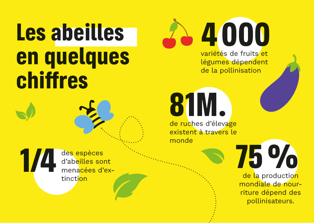 Les abeilles, comme les autres pollinisateurs, jouent un rôle crucial pour l’équilibre de nos écosystèmes et la biodiversité. Lorsque ces insectes collectent et répandent le pollen des fleurs, ils permettent aux plantes, y compris à de nombreuses cultures vivrières, de se reproduire. Environ 4 000 variétés de fruits et légumes dépendent de la pollinisation. Si les abeilles venaient à disparaître, c’est tout l’écosystème de la planète qui serait bouleversé. En outre, l’apiculture est une source non négligeable de revenus et assure un important moyen de subsistance en milieu rural : laisser les abeilles disparaître, c’est faire perdre leurs emplois à des milliers d’agriculteurs et d’agricultrices à travers le monde. Selon un rapport des Nations unies, l’abeille domestique occidentale est l’élevage de pollinisateur le plus répandu au monde, avec environ 81 millions de ruches à travers la planète.