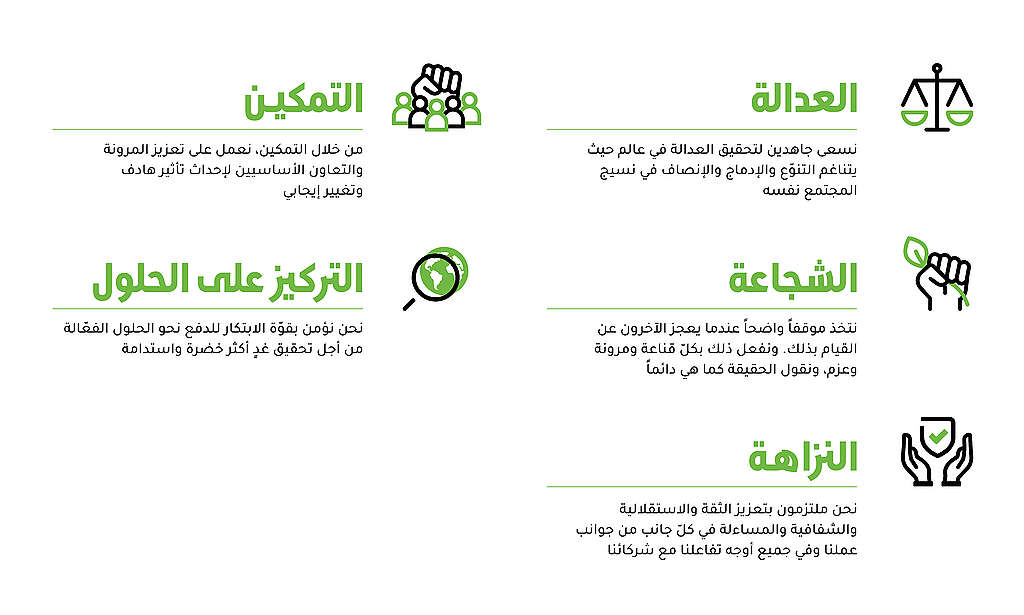 في غرينبيس الشرق الأوسط وشمال أفريقيا، تُشكّل قيمنا الأساس لكل ما نقوم به. فهي تُلهم حملاتنا، وتوجّه أسلوب عملنا مع المجتمعات والشركاء، وترشدنا في سعينا نحو مستقبل أكثر استدامة وعدلاً. هذه القيم ليست مجرد كلمات، بل التزامات نعيشها ونجسّدها في كل يوم.