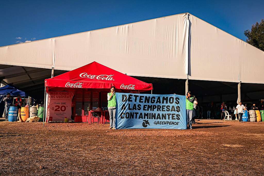 Ante esto, el grupo local de voluntades de Greenpeace en el Estado de México —integrado en gran parte por estudiantes de carreras ambientales de la Universidad Autónoma Chapingo (UACh)— llevó un mensaje claro a Coca-Cola durante el día final de la feria: