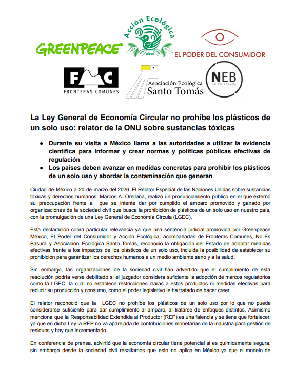 ● Los países deben avanzar en medidas concretas para prohibir los plásticos