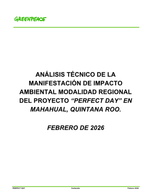 El proyecto Perfect Day de Royal Caribbean es un parque turístico masivo para cruceros que pretende recibir hasta 21,000 visitantes al día. Aunque la empresa afirma que se trata de un desarrollo “controlado”, el análisis realizado por Greenpeace México destaca una serie de elementos que dan cuenta de un conjunto de carencias y vacíos que hacen del instrumento de evaluación de impactos una simulación.