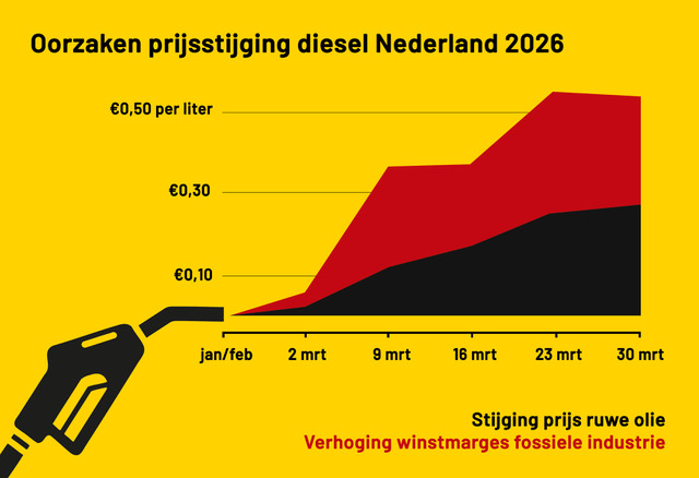 De illegale oorlog die Donald Trump en Benjamin Netanyahu zijn begonnen tegen Iran heeft inmiddels al aan ruim 1400 mensen het leven gekost en ontwricht miljoenen levens. Families verliezen hun dierbaren, steden worden verwoest en de angst groeit met de dag. Terwijl dit menselijke leed zich voltrekt, stijgen de olieprijzen wereldwijd en verdienen internationale olie- en gasbedrijven opnieuw miljarden. Ook bedrijven die geworteld zijn in Nederland, zoals Shell, profiteren hiervan. Ondertussen betalen gewone mensen zoals jij en ik de rekening.