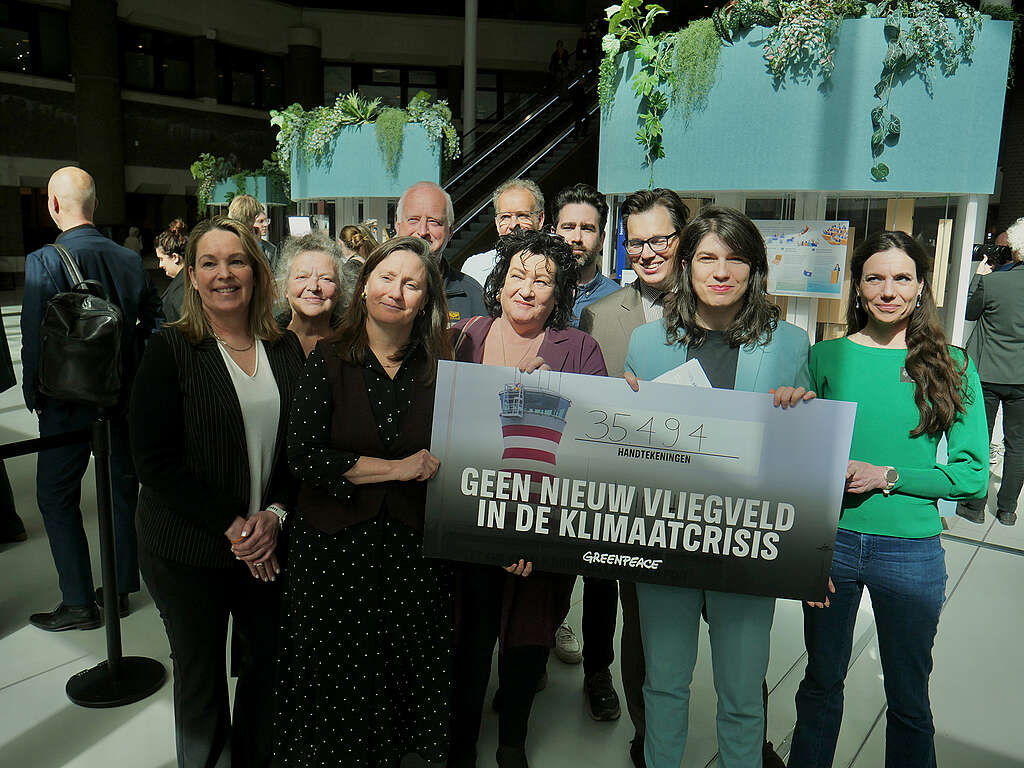 DEN HAAG – Ruim 35.000 burgers eisen dat er definitief een streep gaat door de opening van Lelystad Airport voor vakantievluchten. De verzameling van al deze handtekeningen werd vandaag overhandigd aan Tweede Kamerleden door Greenpeace Nederland en omwonenden-groepen als SATL, S4R en Stichting Red de Veluwe. De petitie ‘zet een streep door Lelystad Airport’ werd aangeboden een dag voor een rondetafelgesprek in de Tweede Kamer over het vliegveld.
