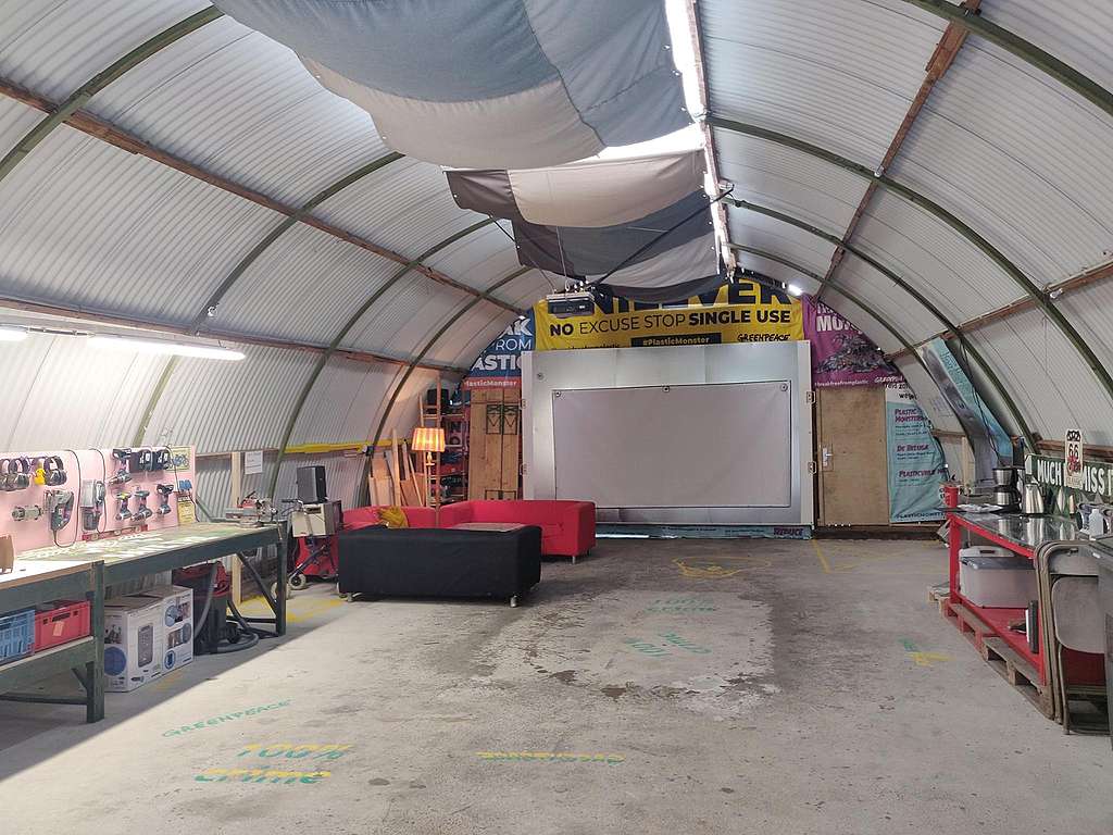 Om groepen te steunen die vreedzaam opkomen voor een betere wereld stelt Greenpeace een deel van diens loods beschikbaar. De loods, die in Amsterdam Noord is, kan gebruikt worden voor van alles: om dingen te bouwen van hout of metaal, om banners te maken met een super handig blits banner-maak-systeem met beamer en scherm, of zelfs om te vergaderen!