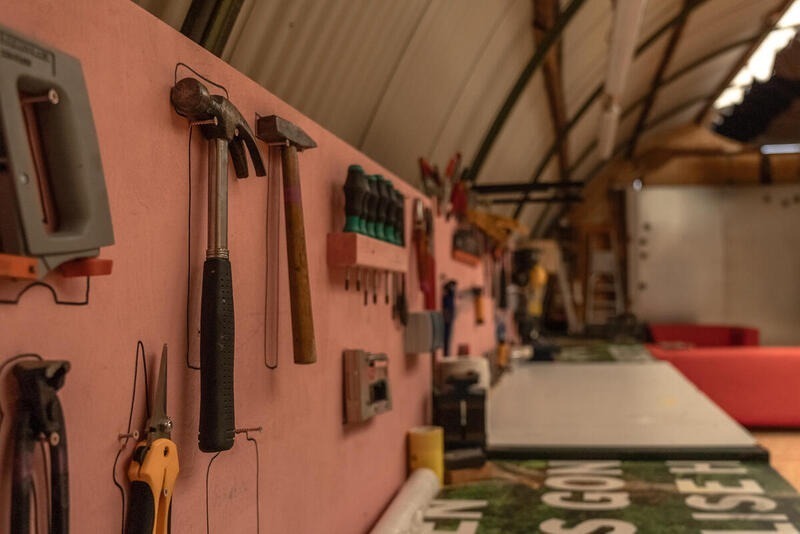 It can be difficult to find a space where you can work on campaigns and build objects. It can be even harder when you want to use the space to build large objects, or when things can get dirty, for example when you need to paint a banner.