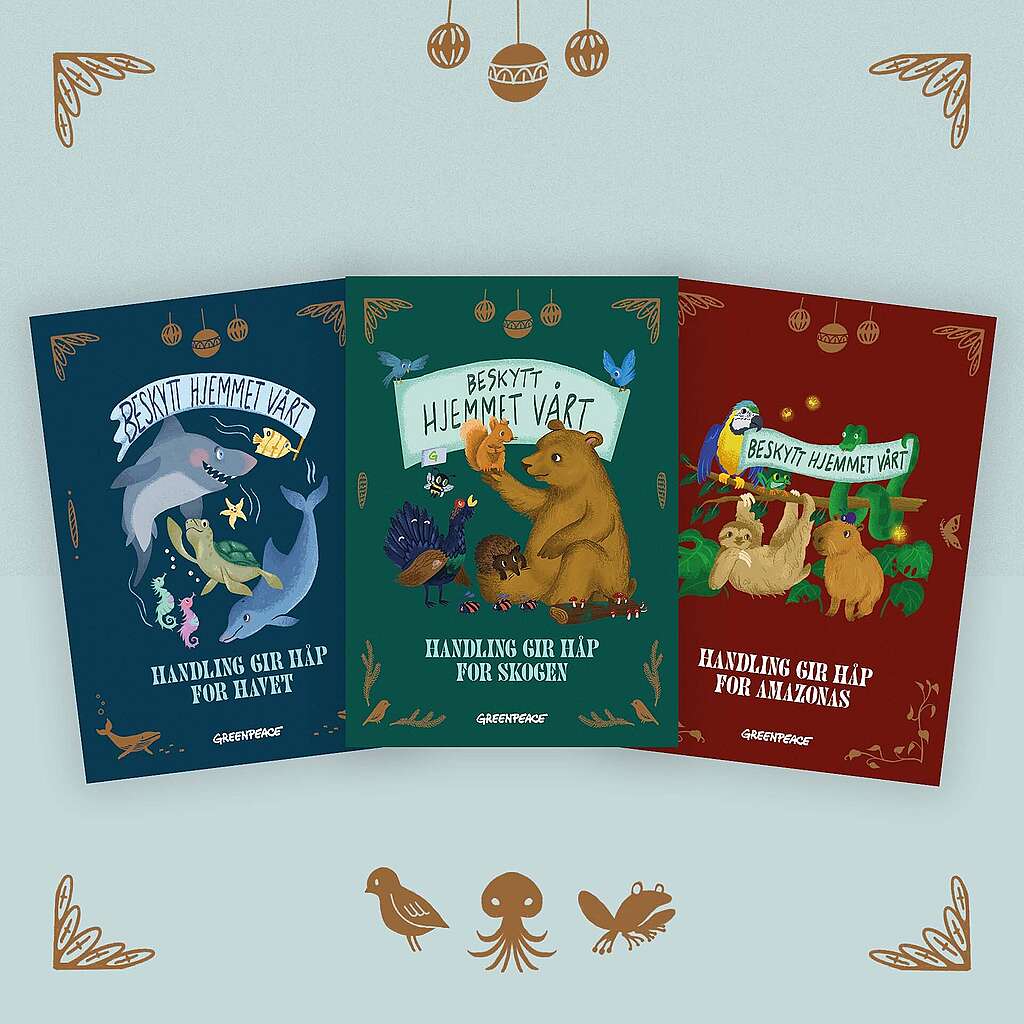 Gi en meningsfull gave i julen. Velg mellom våre unike julekort og støtt Greenpeace sitt arbeid for en bedre planet.