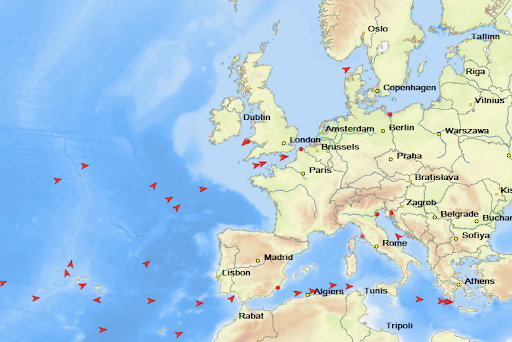 Ruch gazowców z USA w kierunku portów w Unii Europejskiej. Stan na 22.01.2026. źódło: Kpler/MarineTraffic