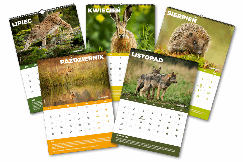 Kalendarz jest naszym podziękowaniem dla osób, które zdecydują się na regularne wspieranie comiesięcznymi darowiznami online naszych działań na rzecz ochrony przyrody i klimatu. W tym roku zapraszamy na stronę dzikamapa.pl. Każda osoba po symbolicznej adopcji swojego ulubione zwierzęcia i udanej transakcji, otrzyma email z indywidualnym linkiem do podania danych wysyłkowych. Możesz w nim również zaznaczyć, że nie chcesz papierowej wersji kalendarza, a jedynie zdjęcia z kalendarzem jako tła na pulpit komputera.