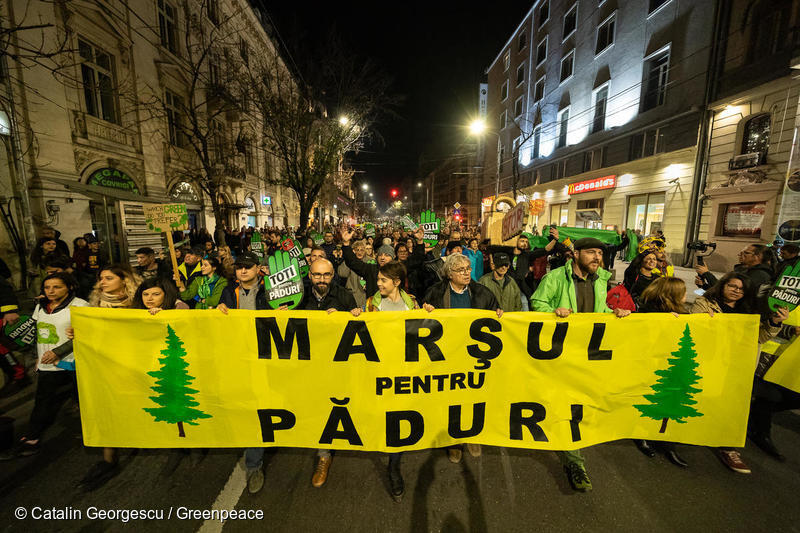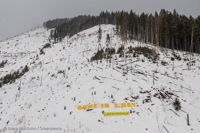 Activiștii au protestat împotriva exploatărilor forestiere ilegale și a corupției din silvicultură pe o zonă uriașă dintr-un sit Natura 2000 din Carpați. Mesajul a subliniat consecințele devastatoare ale defrișărilor din ultimele decenii.