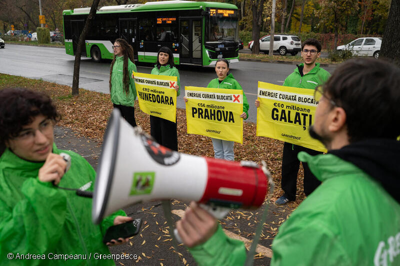 Activiști au protestat în fața Ministerului Investițiilor și Proiectelor Europene pentru a cere eliberarea fondurilor UE destinate proiectelor comunitare energetice din județele de tranziție (Gorj, Hunedoara, Dolj, Galați, Prahova și Mureș).