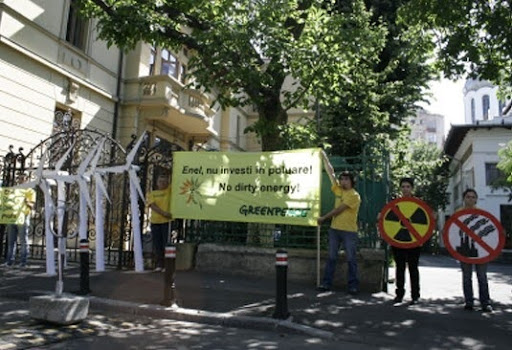 Activiști Greenpeace au cerut companiei de energie Enel să abandoneze construirea termocentralei pe cărbuni de lângă municipiul Galați. Un alt motiv de protest a fost angajamentul Enel pentru finanțarea reactoarelor 3 şi 4 de la Cernavodă.