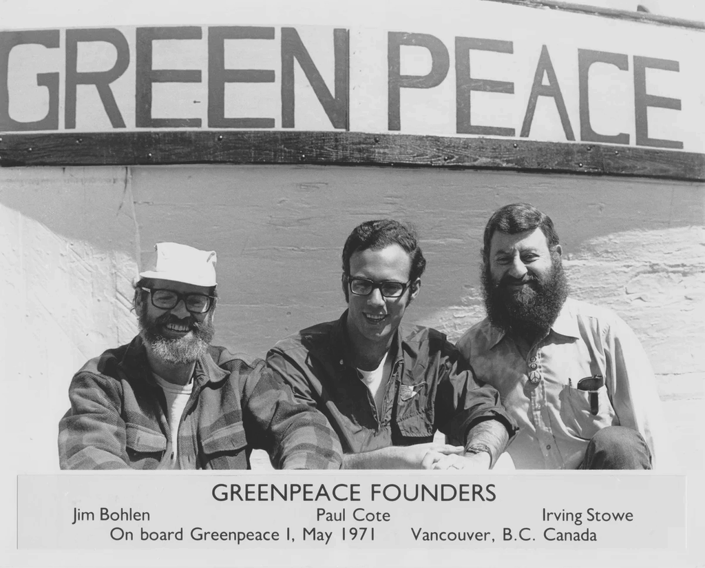 V roku 1970 vznikol výbor Don’t Make A Wave (Nerobte vlny), ktorého jediným cieľom bolo zastaviť druhý jadrový test na ostrove Amchitka v Aleutských ostrovoch. Zakladateľmi výboru boli Dorothy a Irving Stoweovci, Marie a Jim Bohlenovci, Ben a Dorothy Metcalfeovci a Bob Hunter. Prvými členmi vedenia boli Stowe, Bohlen a študent menom Paul Cote.