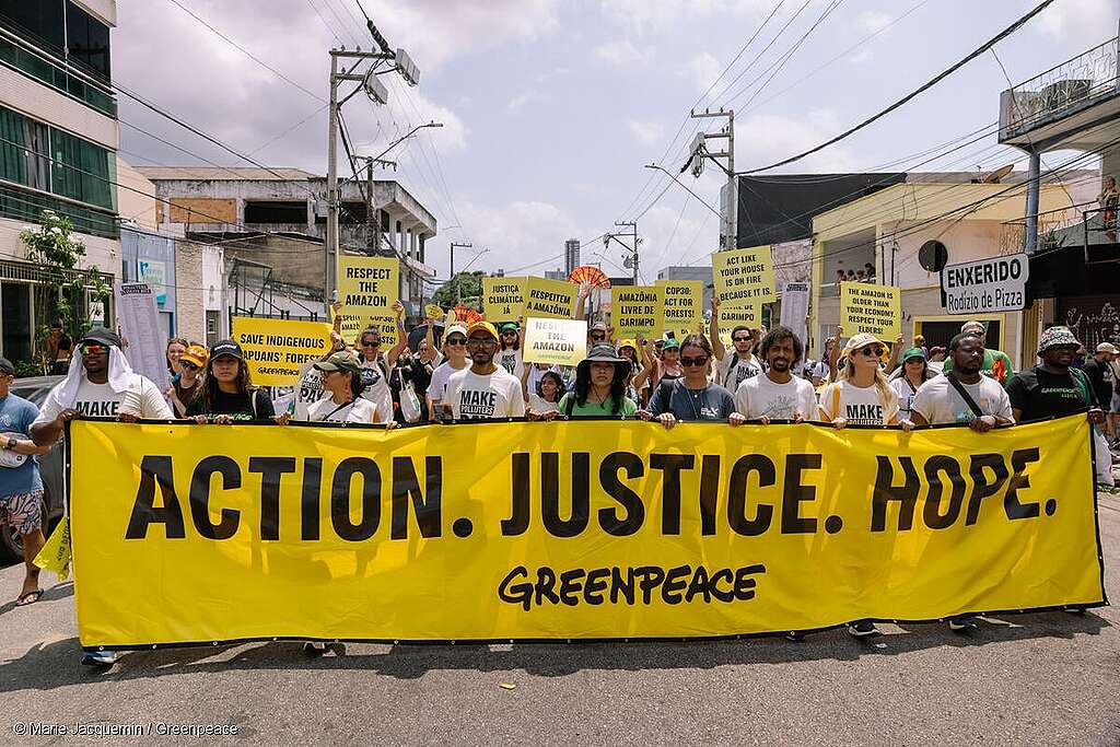 Ob koncu prvega tedna COP30 se je Greenpeace pridružil tisočim ljudem na Globalnem podnebnem pohodu v Belému. Greenpeace je nosil sporočila, kot sta »Spoštujte Amazonijo« in »Naj onesnaževalci plačajo«. Globalni podnebni pohod so organizirale organizacije civilne družbe in skupine staroselskih ljudstev iz več delov sveta.